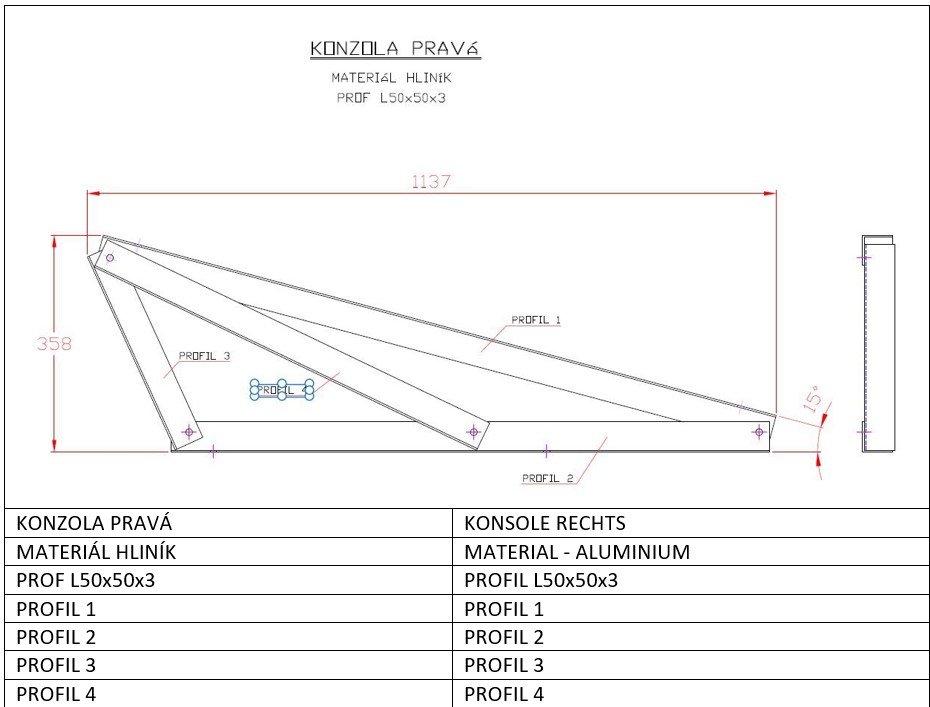 Sklon konzoly je 15°.